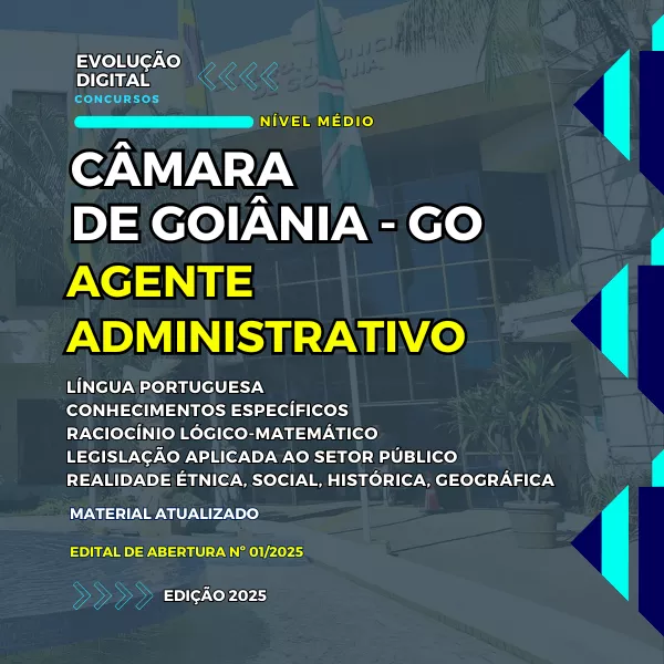 Nossa apostila para o concurso CÂMARA DE GOIÂNIA - AGENTE ADMINISTRATIVO - NÍVEL MÉDIO foi desenvolvida pensando em fazer o seu tempo e esforço valerem a pena.